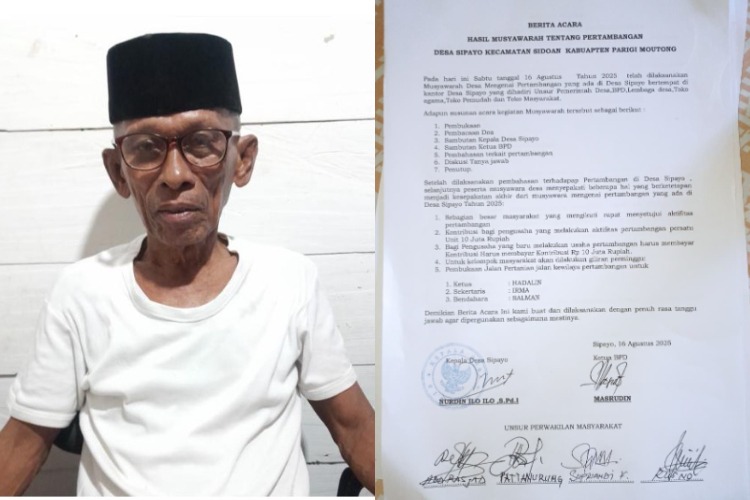 Parigi Moutong, Timursulawesi.id – Tindakan kontroversial dilakukan Kepala Desa Sipayo, Nurdin Ilo Ilo, yang memimpin musyawarah desa untuk membahas legalisasi aktivitas Penambangan Emas Tanpa Izin (PETI) serta penarikan kontribusi Rp10 juta per alat berat. Rapat tersebut digelar pada Sabtu, 16 Agustus 2025, dan dihadiri oleh aparatur desa, tokoh masyarakat, serta pengusaha PETI lokal.