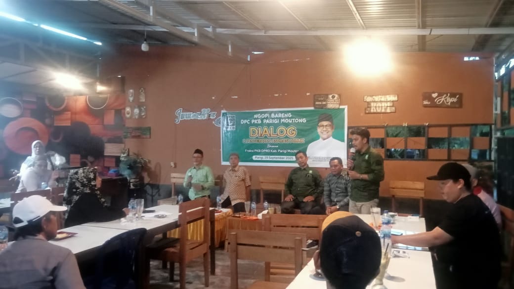 Parigi Moutong, Timursulawesi.id – Dewan Pimpinan Cabang (DPC) Partai Kebangkitan Bangsa (PKB), Kabupaten Parigi Moutong, melalui fraksi PKB yang ada di DPRD menggelar dialog dan penyerapan aspirasi langsung terhadap Masyarakat, kegiatan tersebut dilaksanakan disalah satu café yang ada diwilayah kota Parigi, Pada Senin, 29 September 2025.