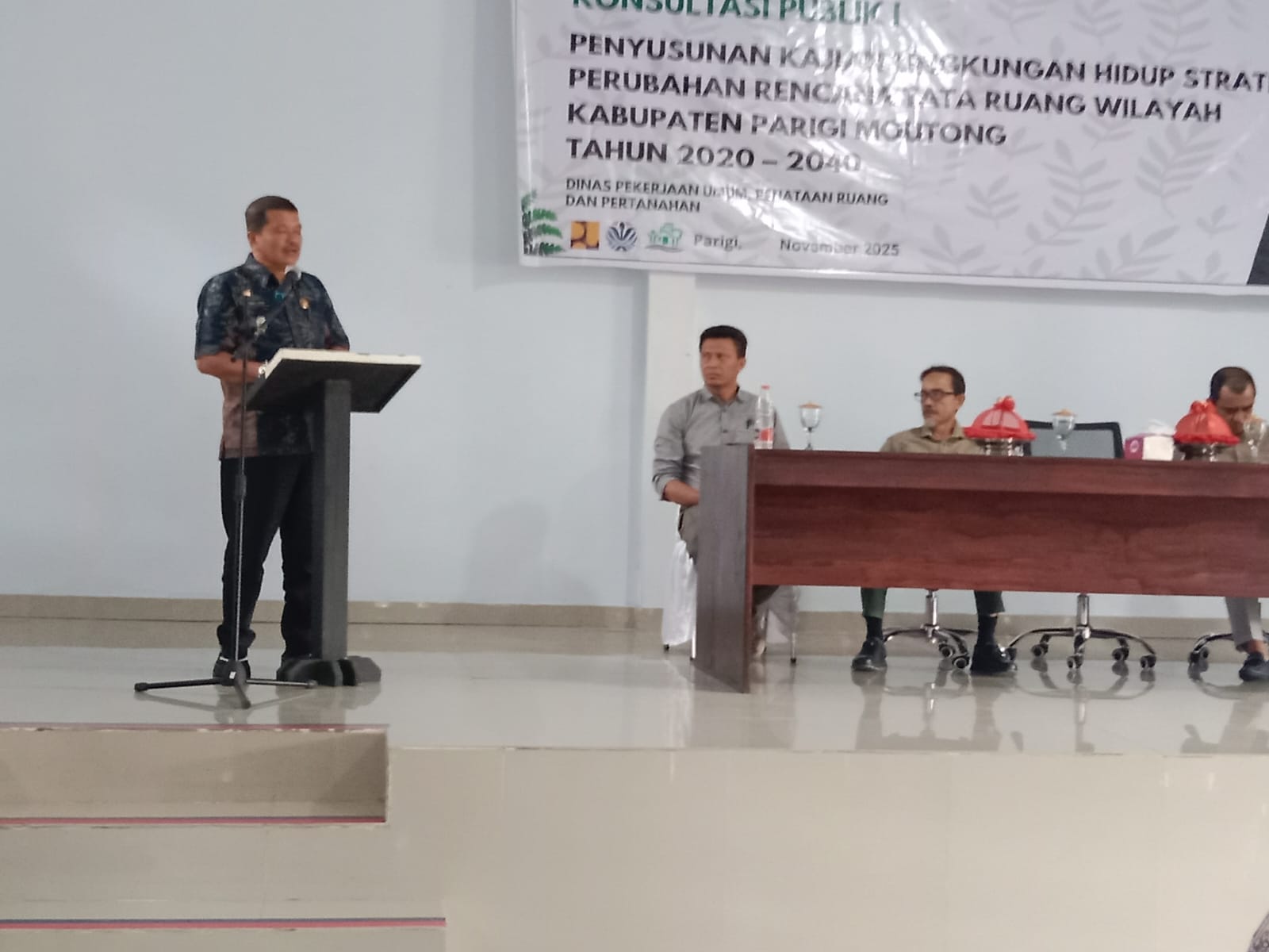 Parigi Moutong, Timursulawesi.id — Wakil Bupati Parigi Moutong Abdul Sahid, mewakili Bupati H. Erwin Burase, menghadiri Konsultasi Publik I penyusunan Kajian Lingkungan Hidup Strategis (KLHS) Perubahan Rencana Tata Ruang Wilayah (RTRW) Kabupaten Parigi Moutong.
