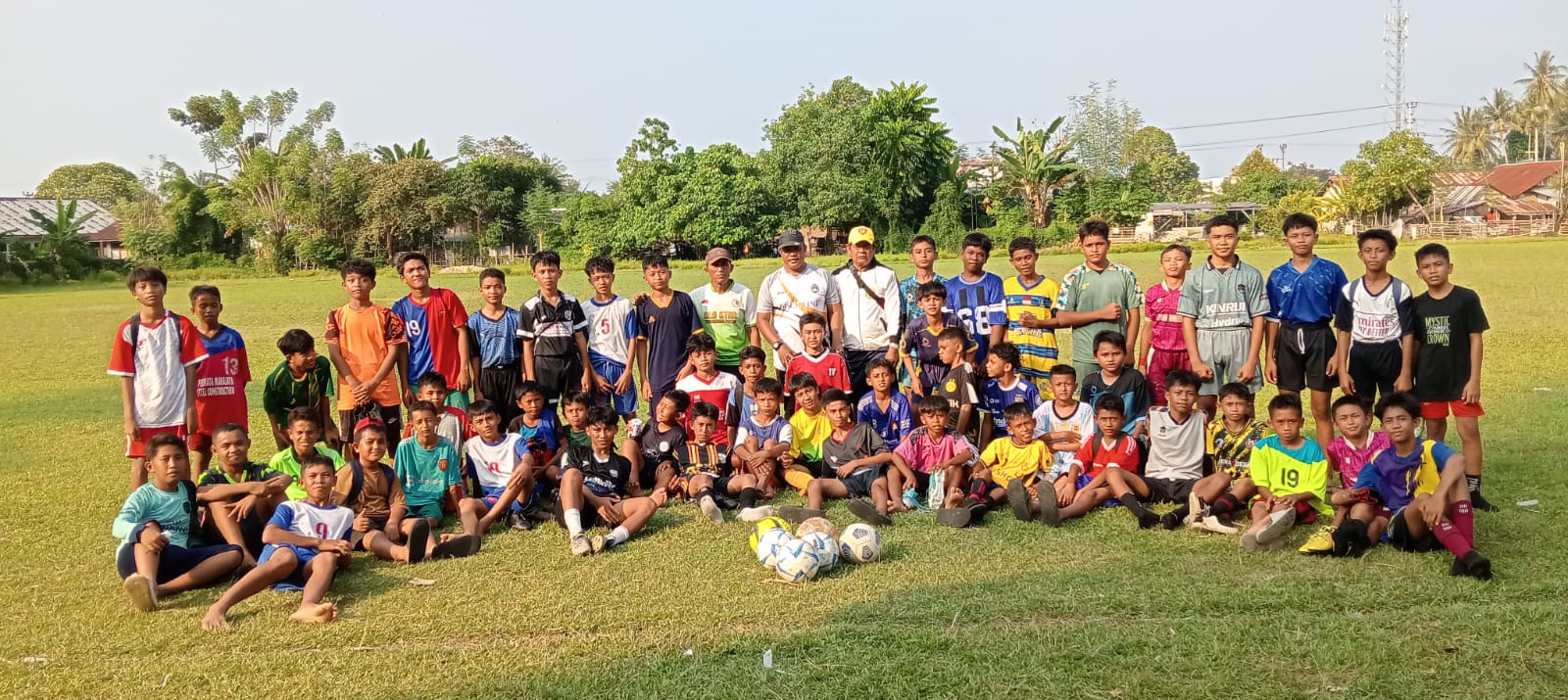 Ket. Foto : Yasir Mardani Coach SSB Tunas Inti Parigi bersama para peserta didiknya usai melaksanakan latihan. (Dok. Pribadi)