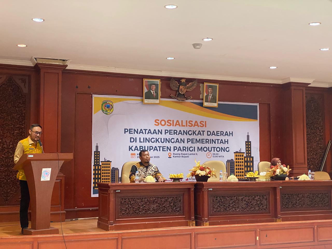 Kepala Bagian Organisasi Setda Parigi Moutong, Epi Satriani, dalam laporannya menegaskan bahwa kegiatan ini mengacu pada Peraturan Pemerintah Nomor 18 Tahun 2016 tentang Perangkat Daerah.