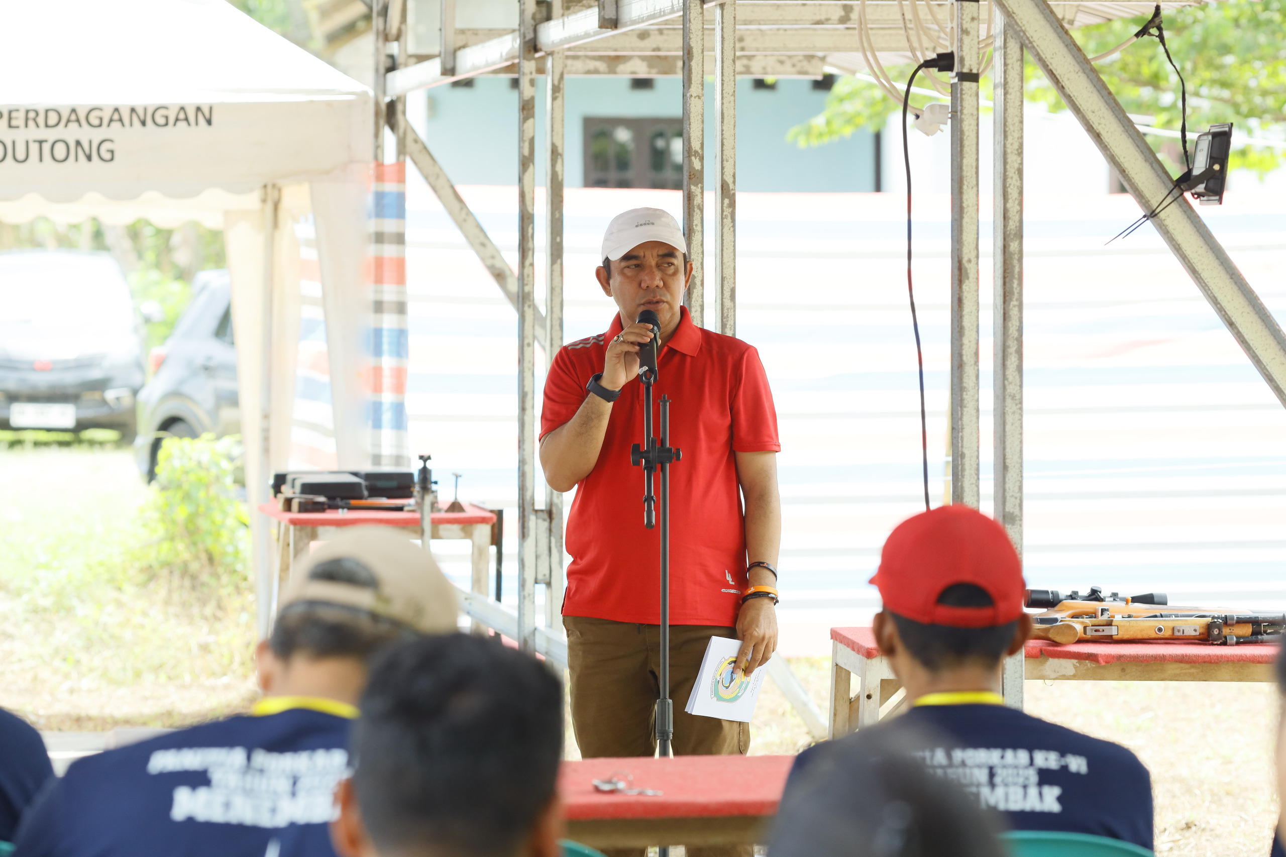 Ket. Foto : Faisan Badja, Ketua KONI Parigi Moutong, saat membuka acara kegiatan Porkab VI pada Cabor Perbakin. (Dok. Humas KONI Parimo)