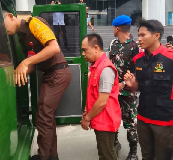 Dalam foto dan video yang diterima redaksi Timursulawesi.id, HB tampak digotong oleh tim penyidik Kejati Sulteng menuju ruang penahanan pada Senin sore.