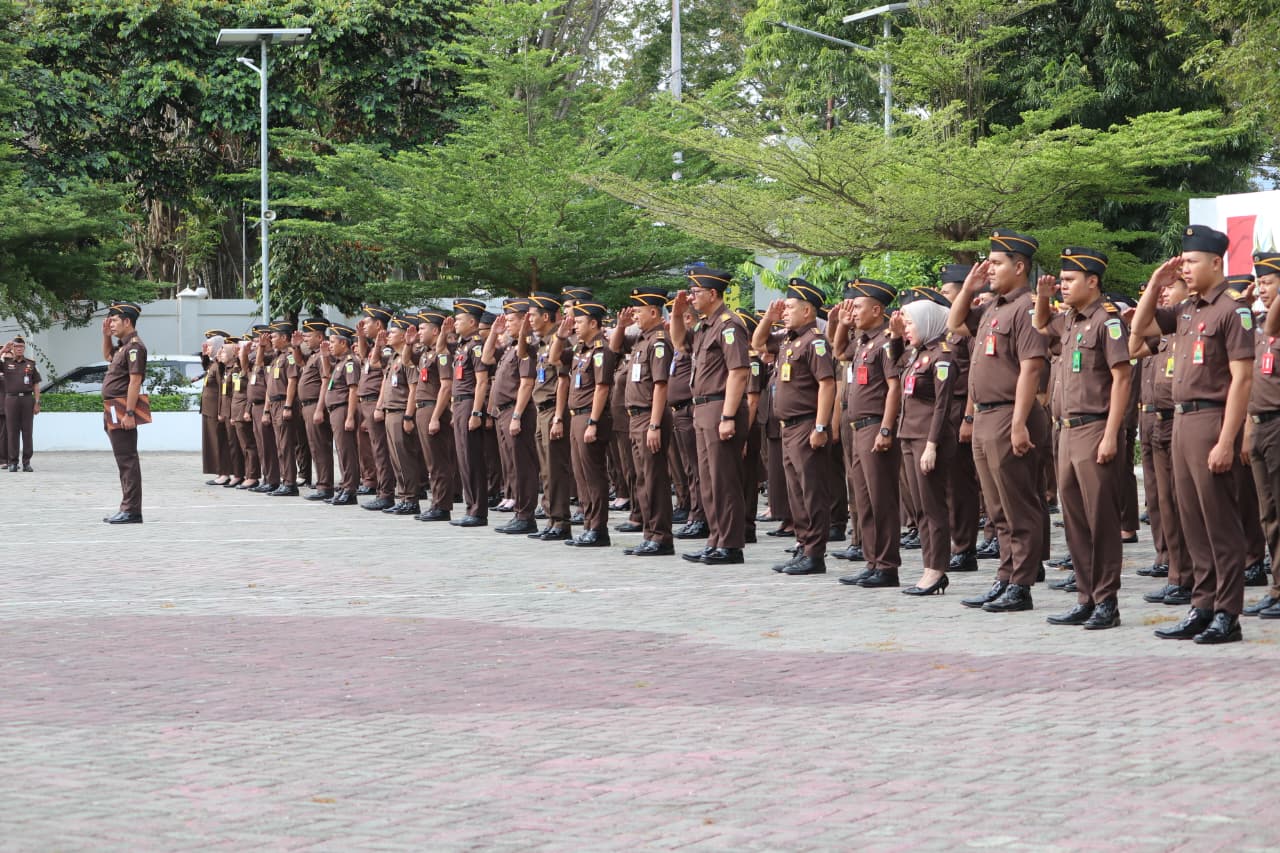 Ket. Foto : Kejaksaan Tinggi Sulawesi Tengah menggelar apel kerja gabungan awal tahun di halaman Kantor Kejati Sulteng. (Dok. Humas Kajati Sulteng)