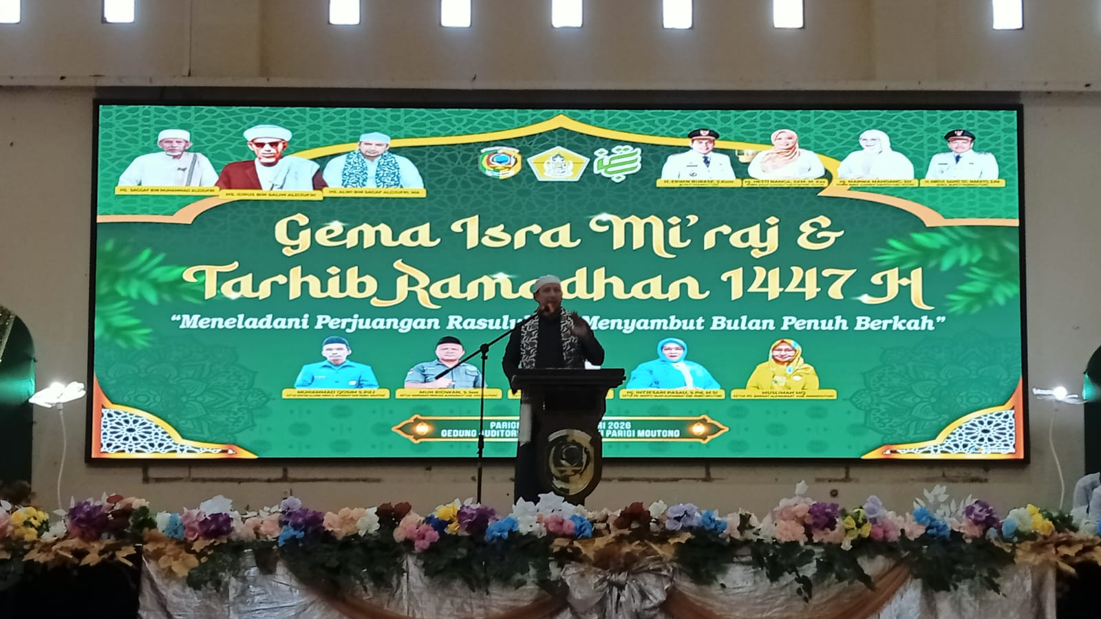 Parigi Moutong, Timursulawesi.id – Ketua Utama PB Alkhairaat Pusat Palu, Habib Alwi bin Saggaf Al-Jufri, menyampaikan tausiyah penuh makna dalam peringatan Isra Mi’raj Nabi Muhammad SAW yang dirangkaikan dengan Tarhib Ramadan 1447 Hijriah, di Auditorium Kantor Bupati Parigi Moutong, Kamis (29/1/2026).