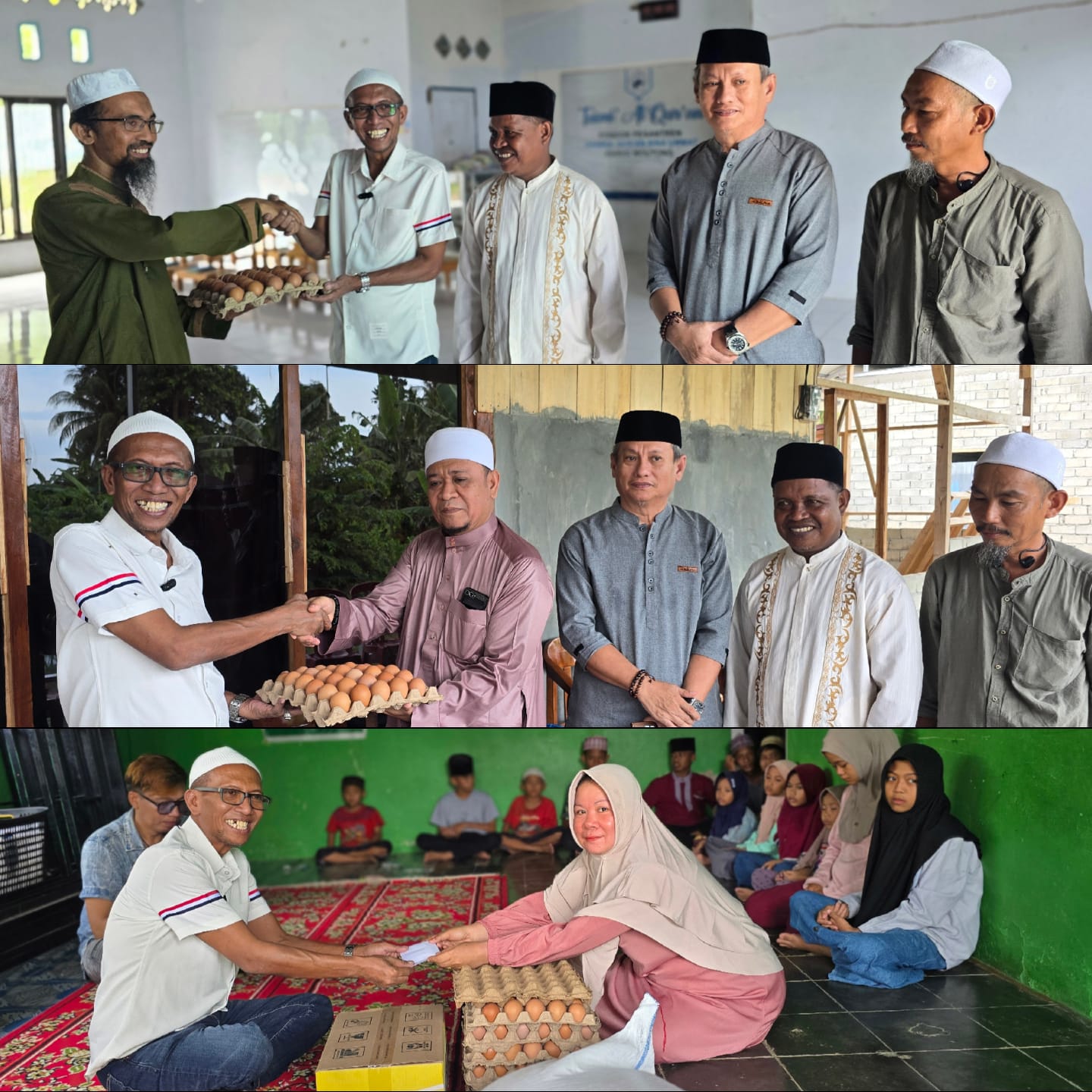 Penyaluran bantuan dimulai sekitar pukul 15.30 WITA hingga selesai. Pada tahap awal, bantuan diserahkan kepada Pondok Pesantren Darul Qur’an Bina Umat, Pondok Pesantren Abnaul Khairat, serta Panti Asuhan Nur Reski Rahmat yang berada di Kelurahan Masigi, Kecamatan Parigi.