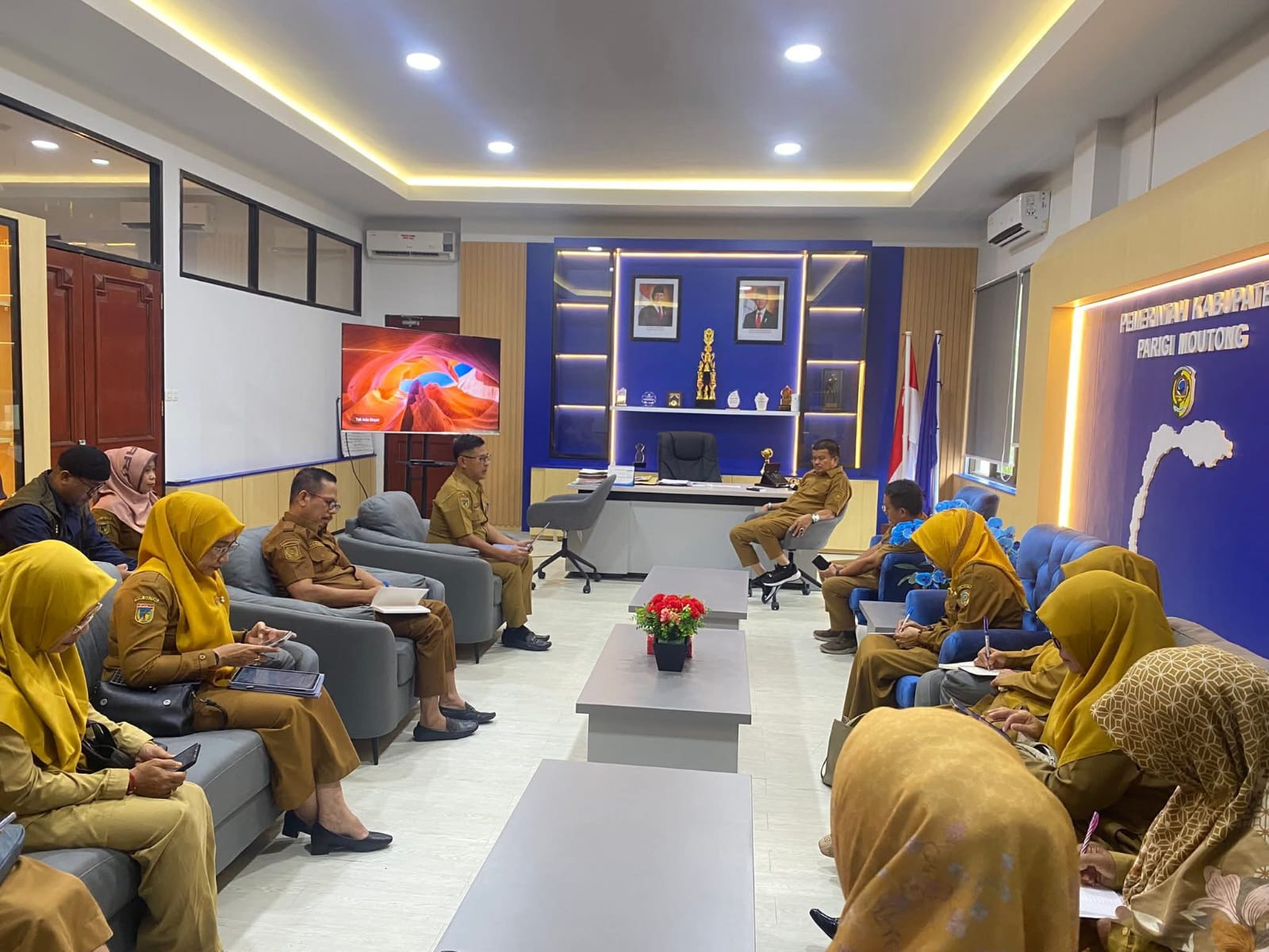 Ket. Foto : Pemerintah Kabupaten Parigi Moutong mulai mematangkan persiapan peresmian Gedung Layanan Perpustakaan melalui rapat koordinasi yang digelar di ruang kerja Wakil Bupati, Senin (16/3/2026). (Dok. Diskominfo Parimo)