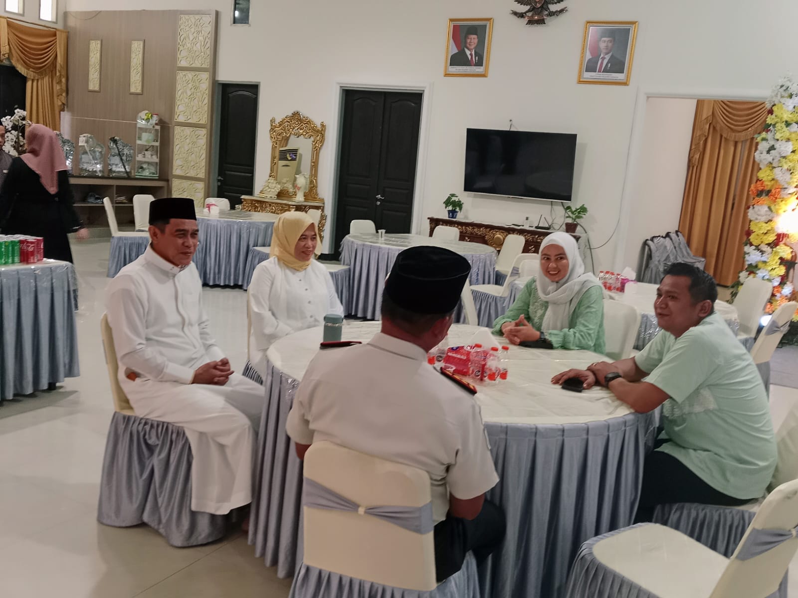 Bupati Erwin Burase bersama istri menyambut langsung para tamu undangan. Jabat tangan dan sapaan hangat yang terjalin mencerminkan kedekatan serta keharmonisan antara pemerintah daerah dan masyarakat.