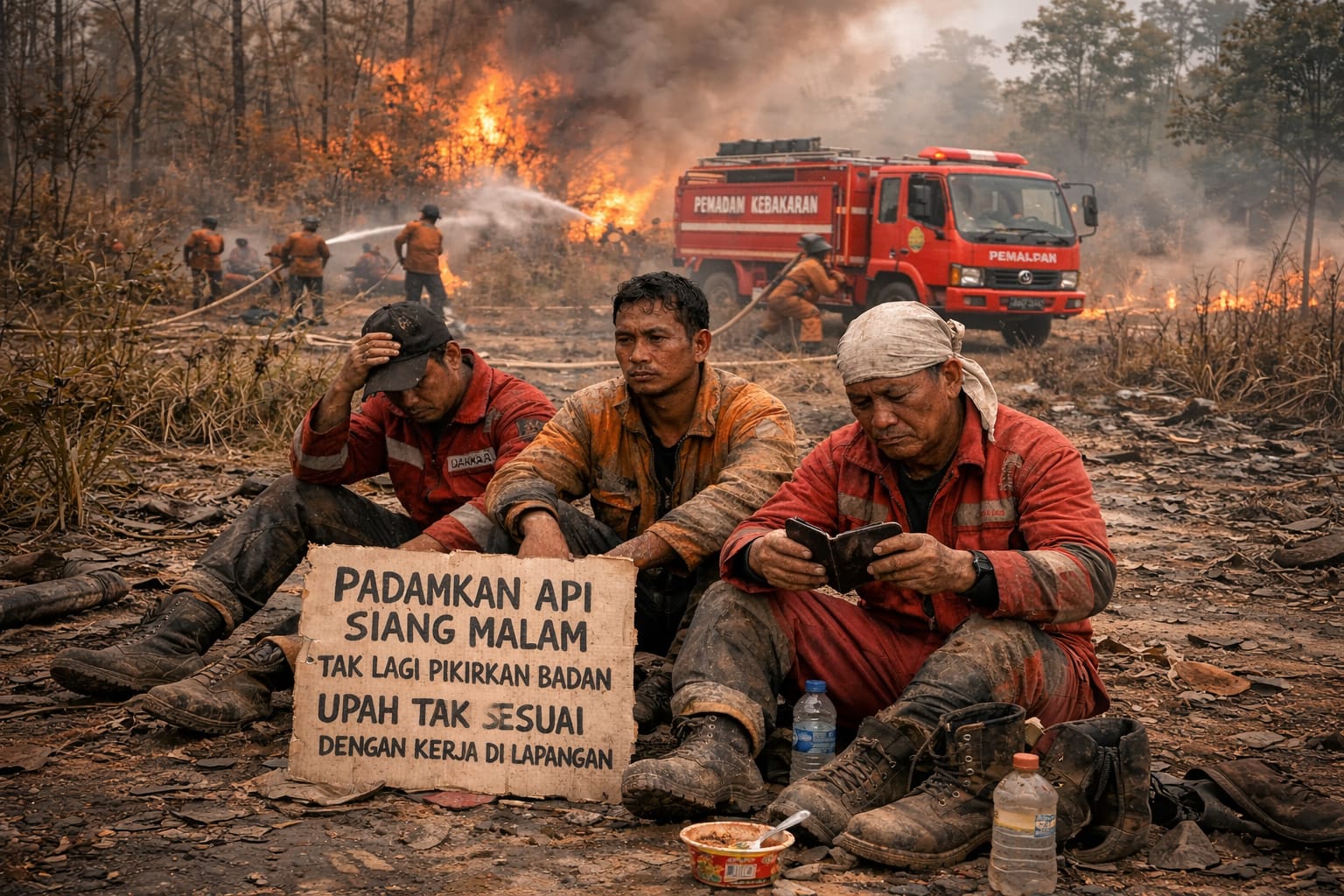 Ketimpangan pembagian upah pun menjadi sorotan. Sejumlah personel yang bekerja penuh selama 1×24 jam di lapangan mengaku hanya menerima bayaran minim, bahkan lebih kecil dibanding mereka yang tidak terlibat langsung dalam pemadaman.