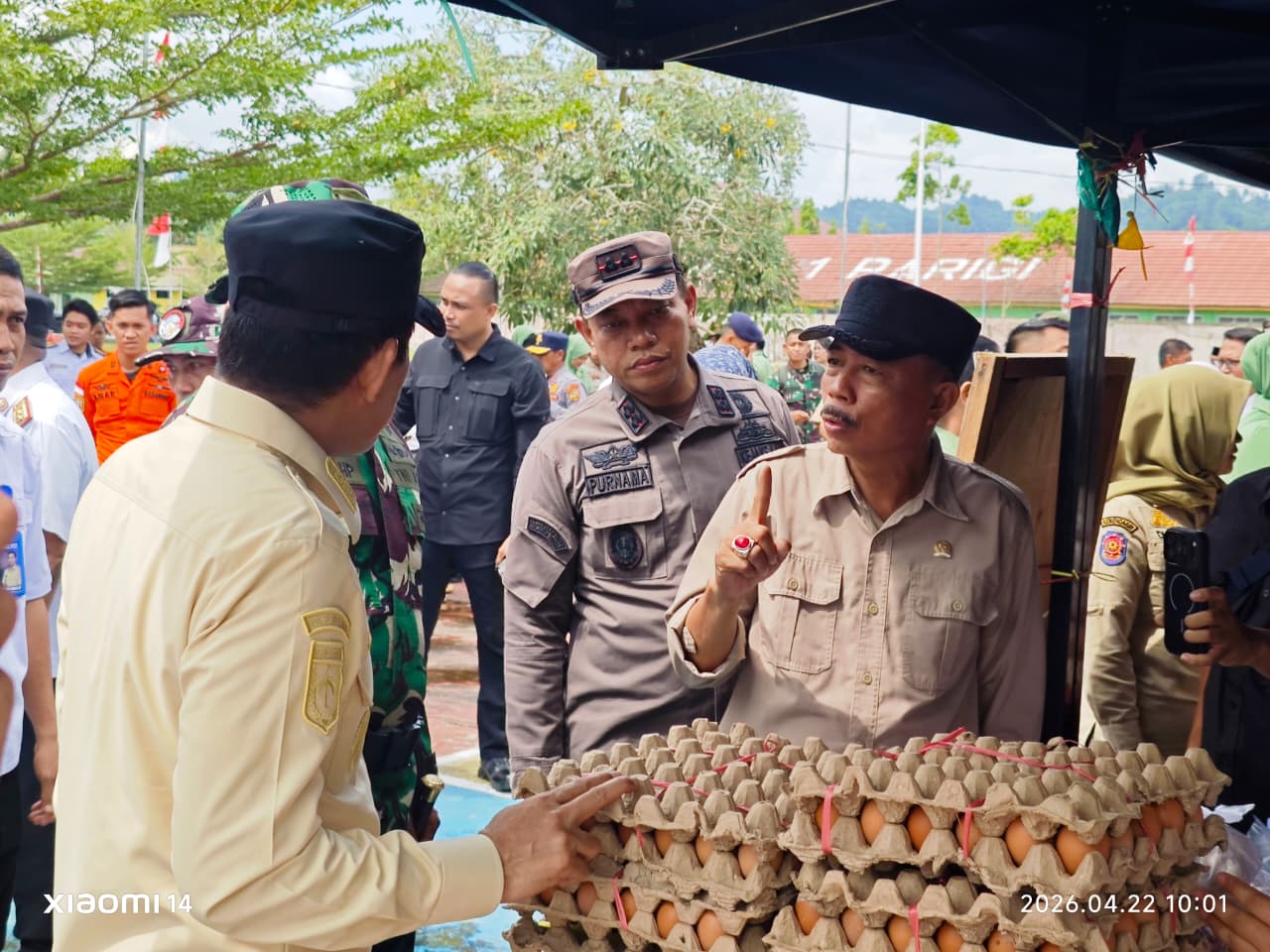 Usai upacara, Ketua DPRD bersama rombongan Forkopimda meninjau pelaksanaan kegiatan bakti sosial. Ia tampak berinteraksi dengan warga saat pembagian paket sembako gratis serta memantau layanan pemeriksaan kesehatan di lokasi kegiatan.